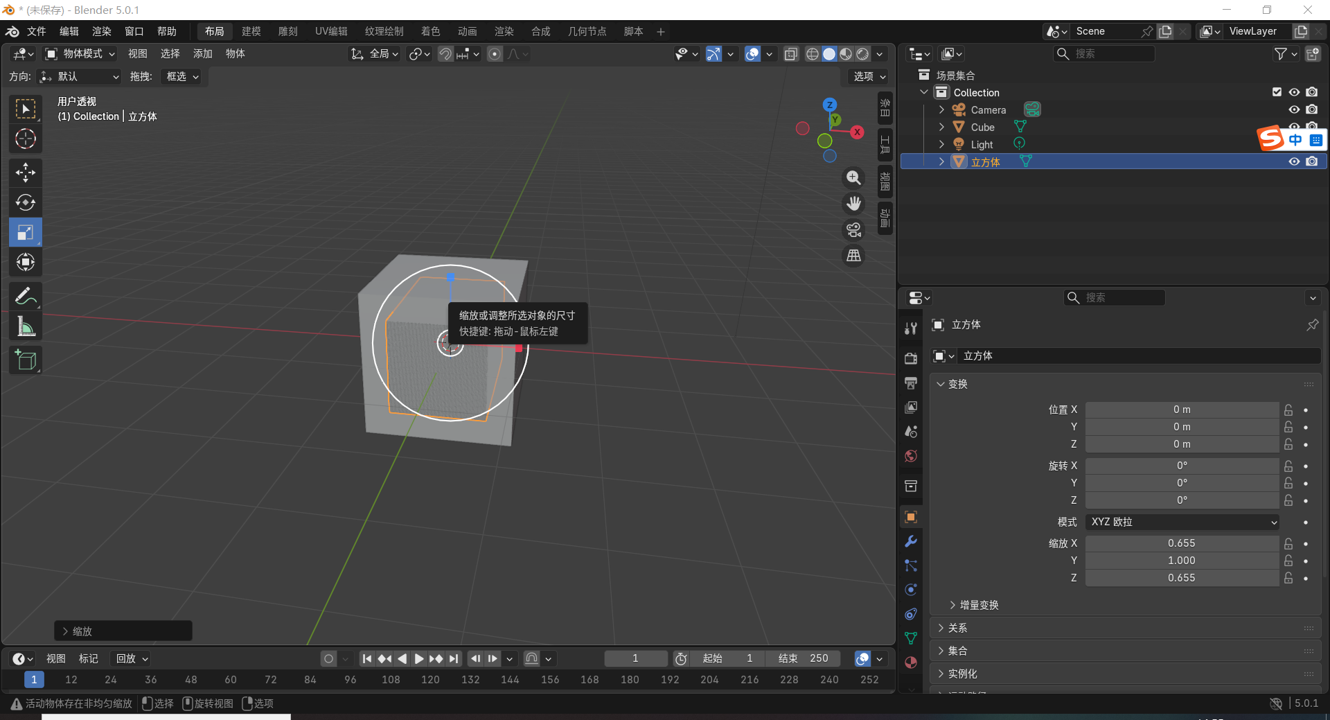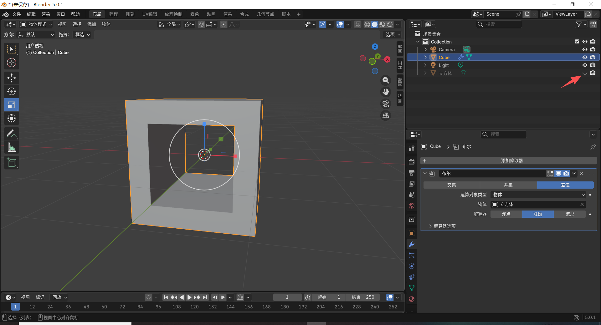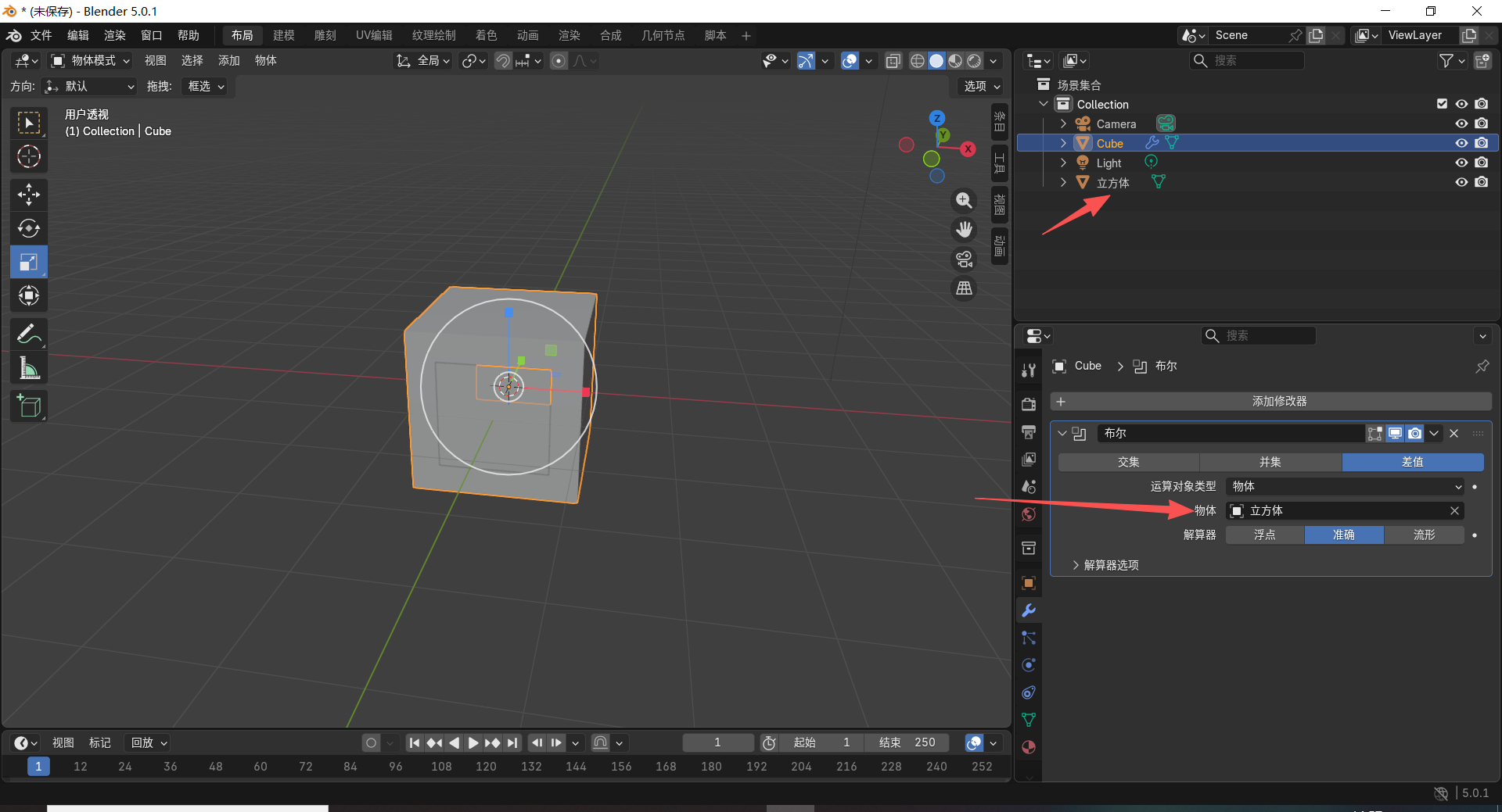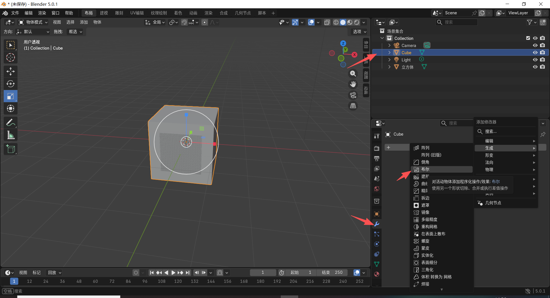因为用的是选定物体,所以要在右侧面板,点击"cube"的正方体