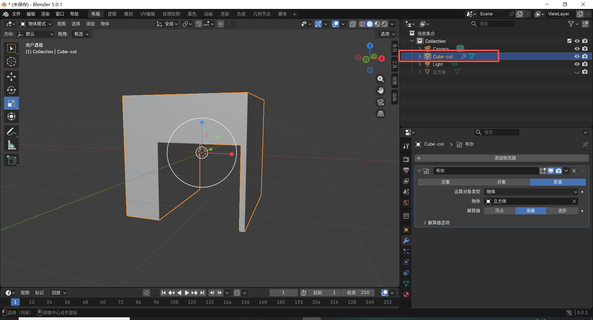 选择主体正方形,选择修改器,并添加修改器,选择生成->布尔