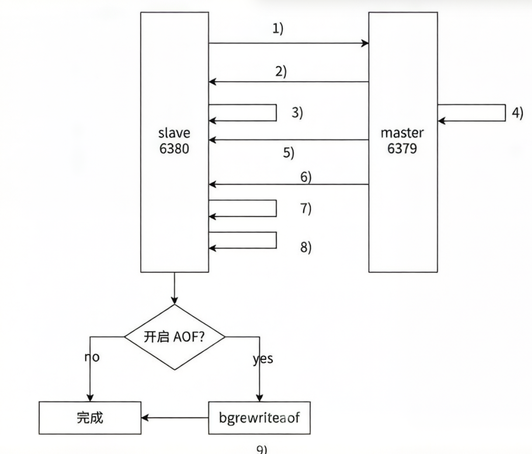 如果从节点加载 RDB 完成之后,并且开启了 AOF 持久化功能,它会进行 bgrewriteaof 操作,得到最新的 AOF 文件。