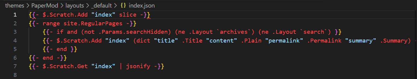 index.json时 ,此时$.Scratch.Get "index"获得的是空值nil,此时站点有 5 篇文章,通过$.Scratch.Add "index",输出[A,B,C,D,E]到.Scratch对象 - 然后修改了一篇文章并保存,Hugo 重新渲染索引文件