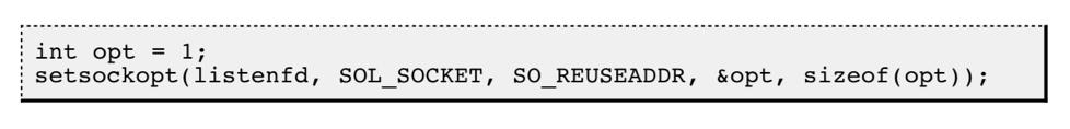 在 server 的 TCP 连接没有完全断开之前不允许重新监听, 某些情况下可能是不合理的 :