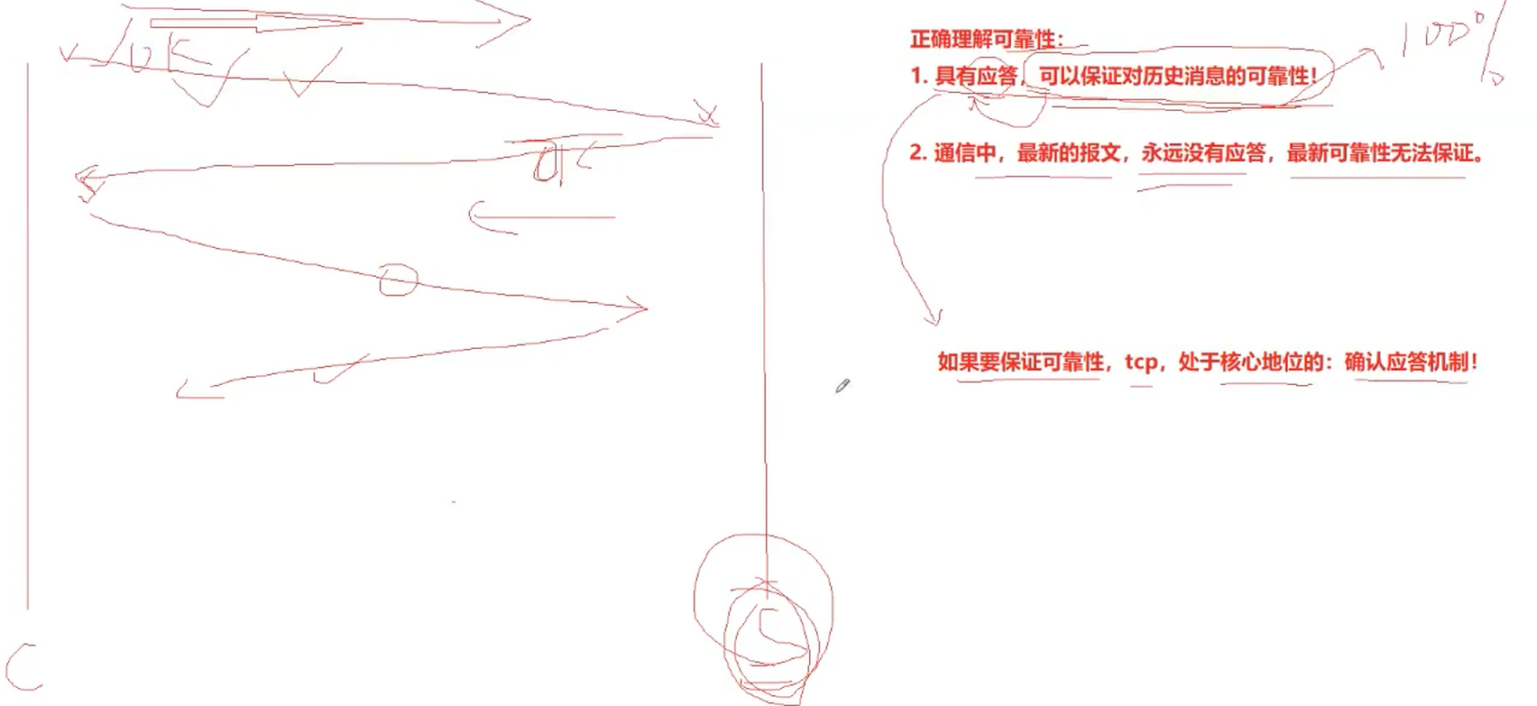 我们不对应答做应答,而是在tcp通信时双方是对等的,都可能会给对方发报文,双方都得给发送方做出应答,那么我们在客户端发送报文到服务端后,收到了应答就能保证前面给服务器发送的报文是可靠的,保证可靠性;而服务端也是如此,服务端给客户端发报文,只要能收到应答就能保证前面给客户端发送的报文是可靠的,保证可靠性;一旦站在双方角度没有收到对应应答,就认为该报文丢失,就应该重传