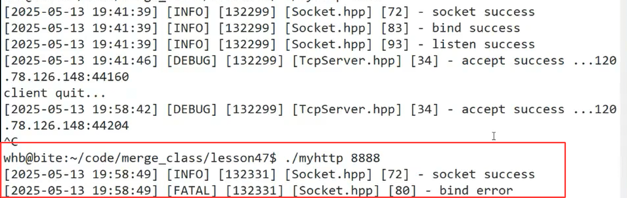因为我们服务器是主动关闭连接的一方,四次挥手之后处在time_wait状态,此时我们的连接是还没有彻底断开的,没有彻底释放掉连接,此时端口号还在被占用,所以此时就无法绑定相同的端口号了,就爆出了绑定bind失败的错误