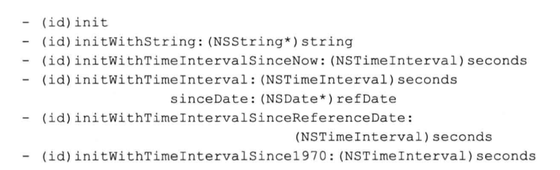 正如上述代码所展示的,initWithTimeIntercalSinceReferenceDate:是全能初始化方法。其余的初始化方法都要调用他,只有在全能初始化方法中才会存储内部数据,这样当底层数据存储机制改变时,只需要修改这里的代码就行。