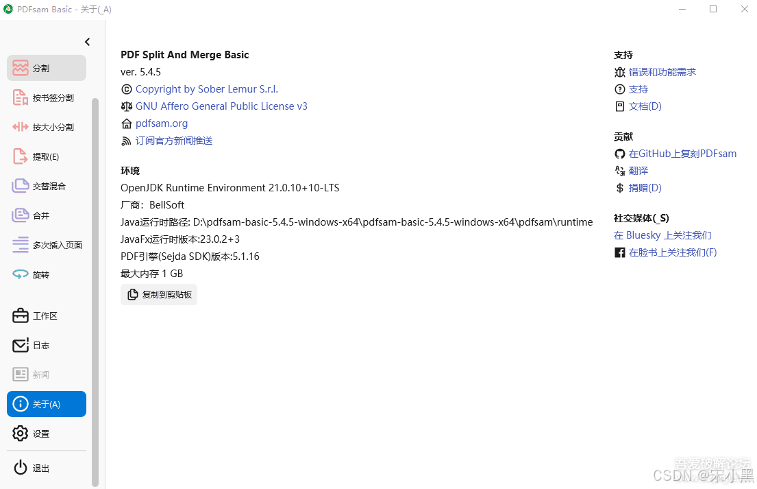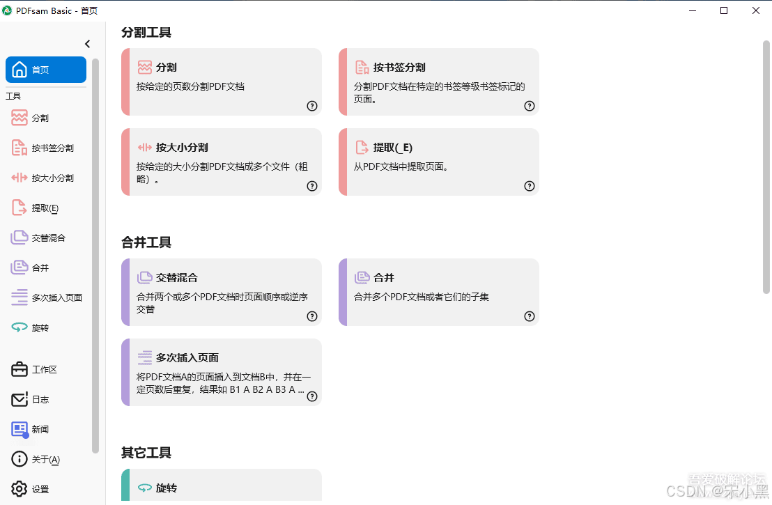 与市面上动辄几百兆的 PDF 编辑器不同,PDFsam Basic 坚持"少即是多"的理念------不做全能选手,只做拆分合并领域的专家。