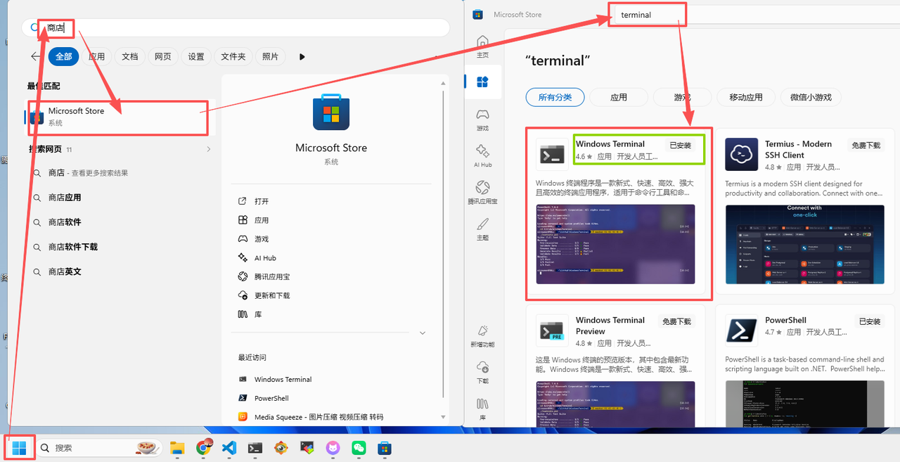 - 搜索并安装 Windows Terminal。