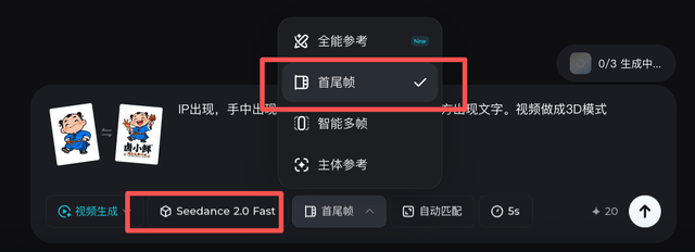 Seedance2.0 是生视频一站式模型 , 目前仅支持 「全能参考 / 首尾帧」 两个入口,逻辑非常清晰: