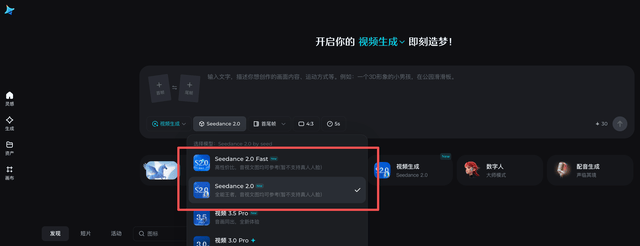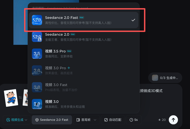 即梦 Web 上线了 Seedance2.0 fast 模式,生成速度很快,消耗积分少 30%-50%,又快又便宜!