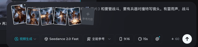Seedance2.0 支持 图 / 音频 / 文本 多模态联合参考, 最多可同时使用12个参考文件。