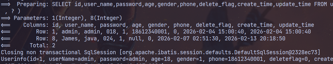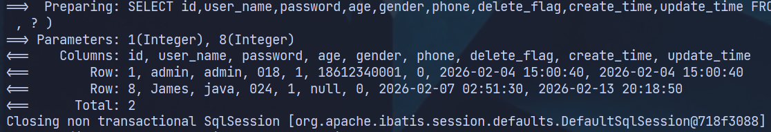 为了方便学习,我们可以借助日志,查看Mybatis-Plus执行的SQL语句,参数和执行结果。