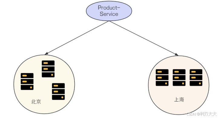 微服务架构中,一个服务通常有多个实例共同提供服务,这些实例可以部署在不同的机器上,这些机器可以分布在不同的机房,比如 product-service: