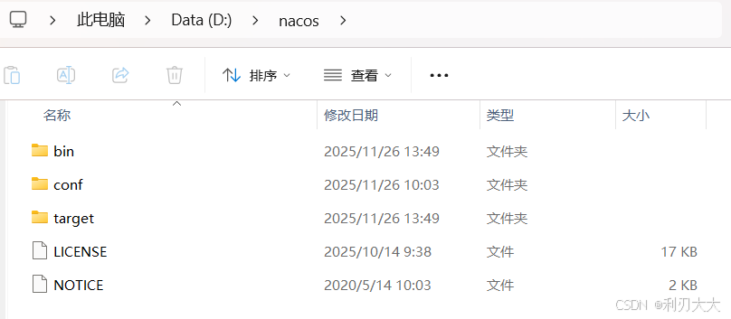 conf:Nacos 配置文件target:存放 Nacos 应用的 jar 包