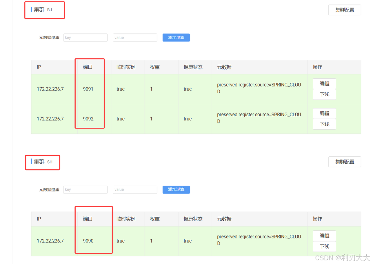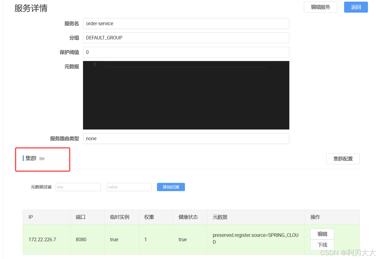 重启服务,观察 Nacos 控制台,SH 集群下多了一个实例