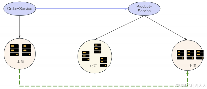 比如 order-service 在上海机房,product-service 在北京和上海机房都有实例,那我们希望可以优先访问上海机房。如果上海机房没有实例,或者实例不可用,再访问北京机房的实例。通常情况下,因为同一个机房的机器属于一个局域网,局域网访问速度更快一点。