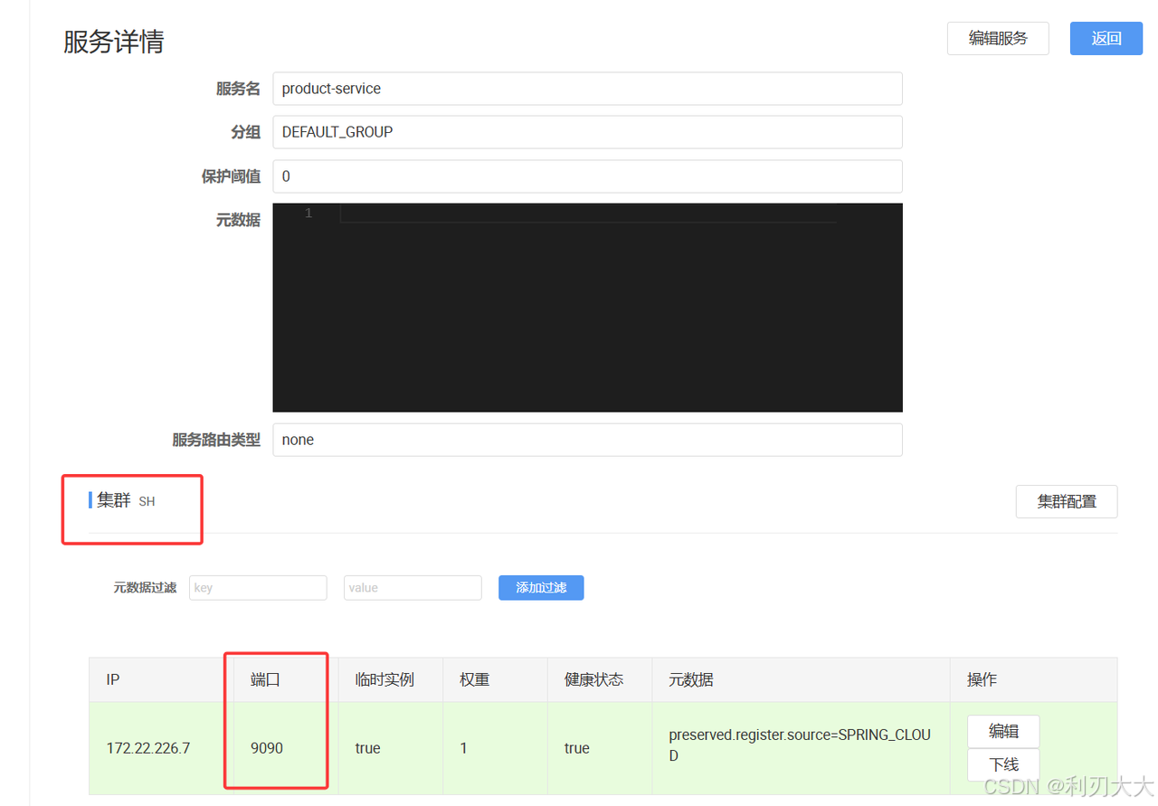 product-service配置集群名称yamlspring: cloud: nacos: discovery: server-addr: 49.235.136.223:8848 cluster-name: SH # 集群名称:上海集群 loadbalancer: nacos: enabled: true # 同样需要开启负载均衡策略