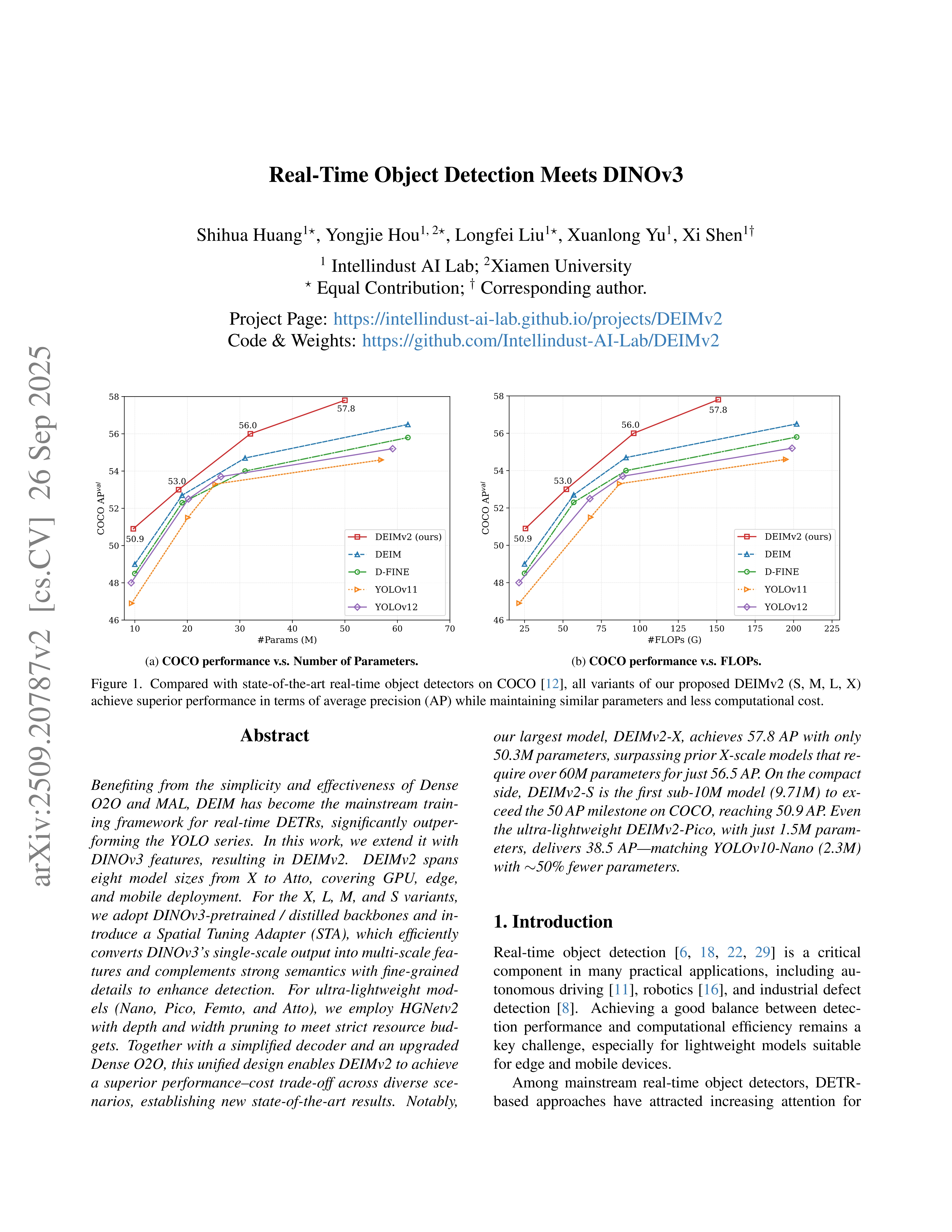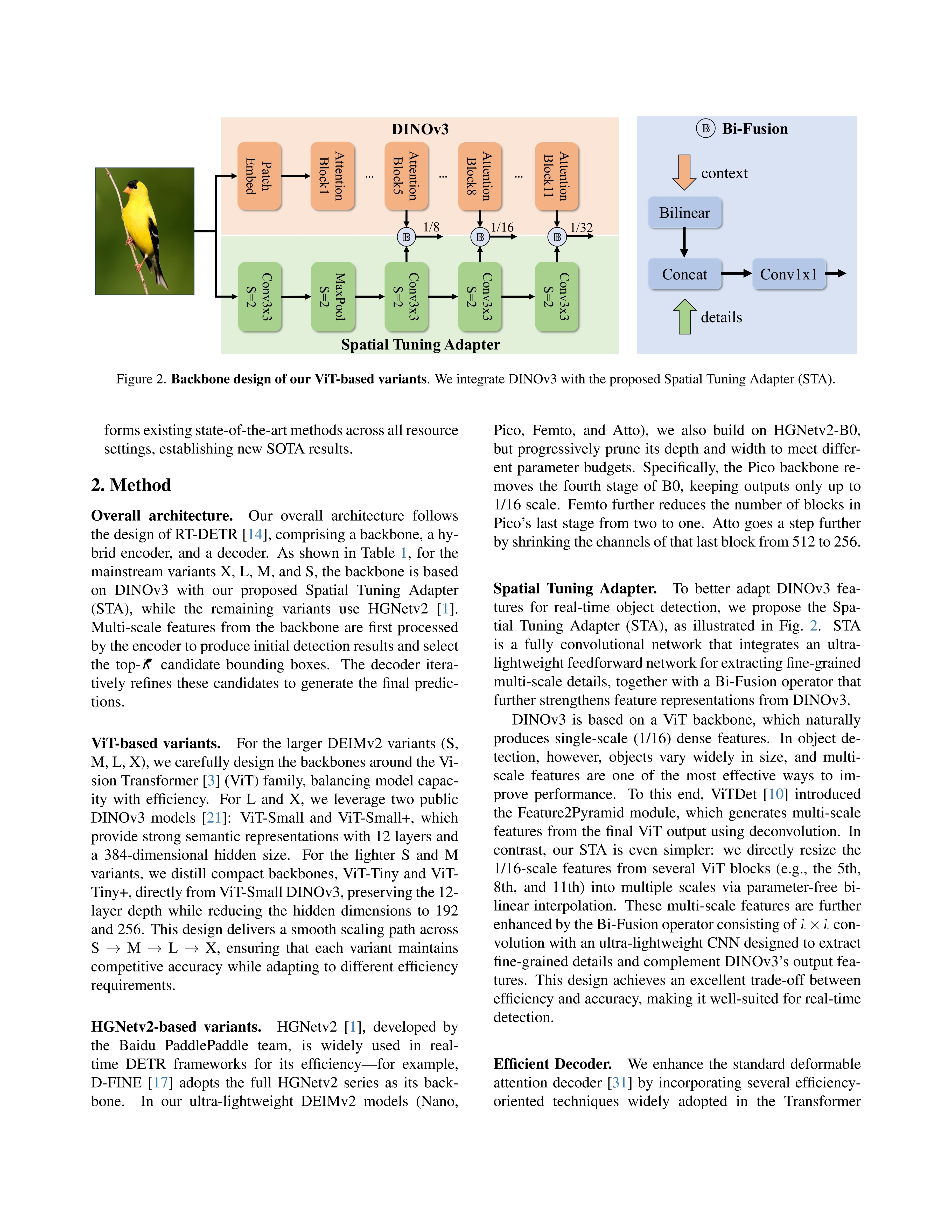 Real-Time Object Detection Meets DINOv3 是 2025 年 CV 领域的重要方向,核心是将 Meta 最新自监督视觉基础模型DINOv3 的超强通用特征,与实时目标检测(如 DETR、YOLO)的高效推理架构深度融合,在参数量、精度、速度 三者间取得突破性平衡,尤其在边缘 / 端侧场景表现亮眼。Meta AI 2025 年 8 月发布,自监督视觉大模型,最大ViT-7B (70 亿参数),用17 亿图像 自监督预训练。无需微调即可在分类、检测、分割、深度估计 等多任务上逼近 / 刷新 SOTA;生成高质量密集特征图,适合下游检测 / 分割。