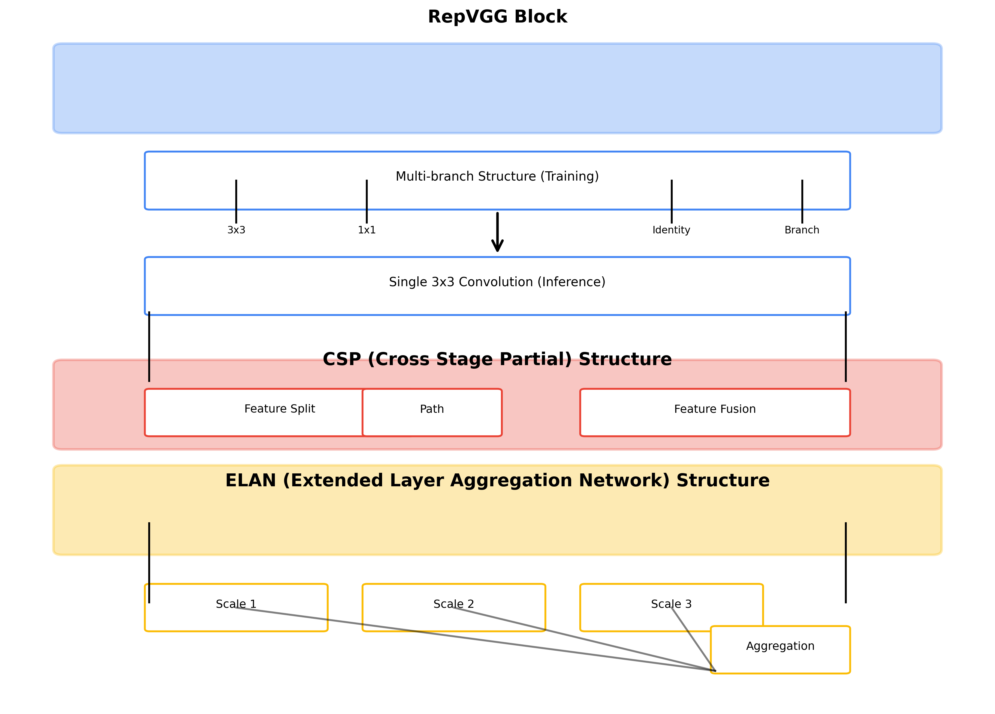 - RepVGG块:通过结构重参数化技术,将训练时的多分支结构转换为推理时的单一3×3卷积