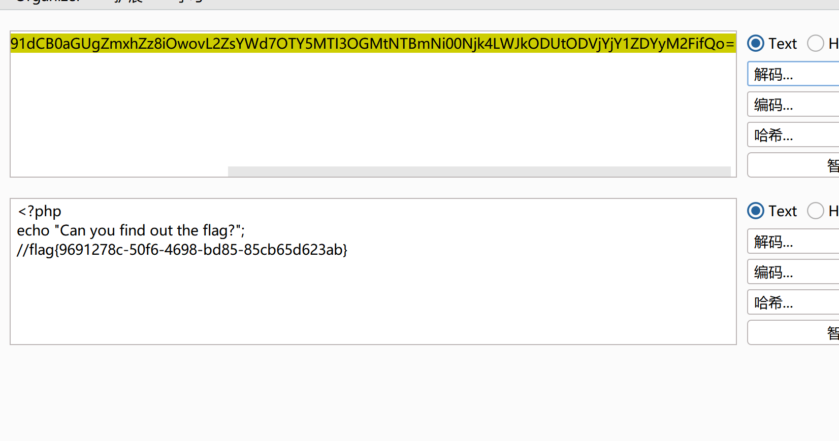 我们来直接进行读取 这边由于我们使用的是这个进行编码之后的语句,所以得到的就是base64编码之后的语句,所以需要解码