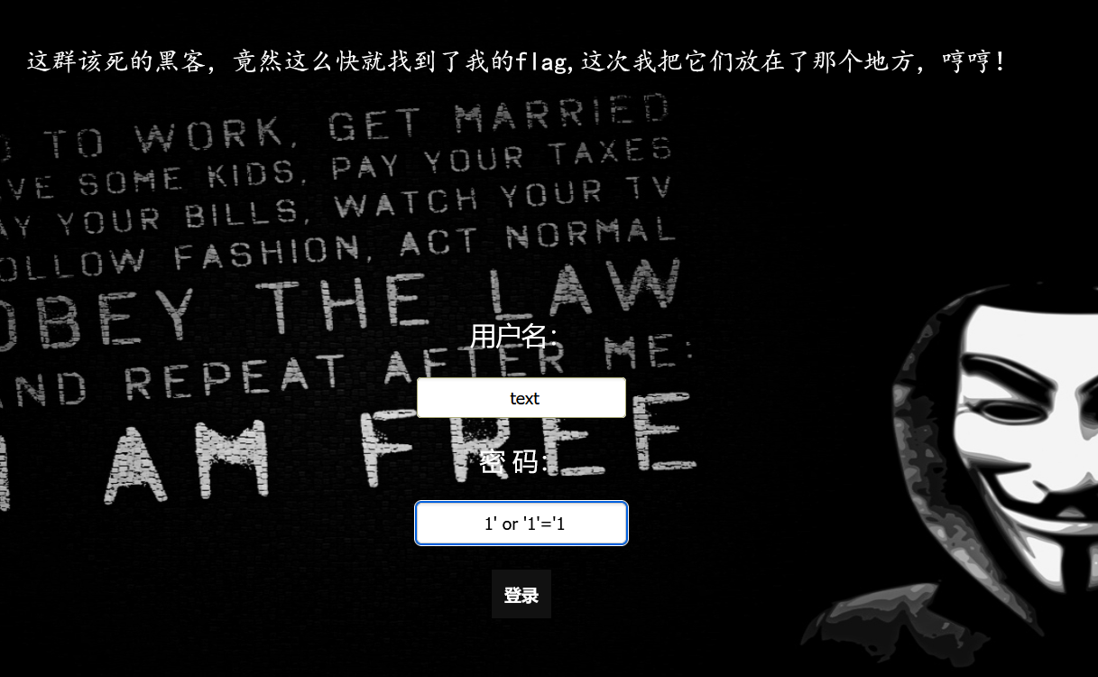 他说注入成功并且获得一个密码,但是没有用,这个密码的话不是flag