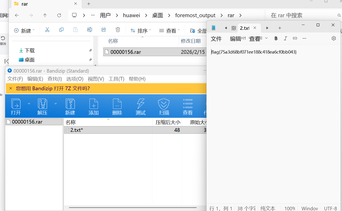 我们发现一个压缩包,这边是用工具apchpr工具被爆破之后得到密码是7869