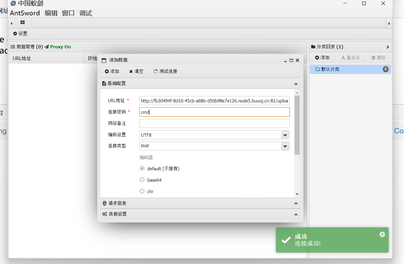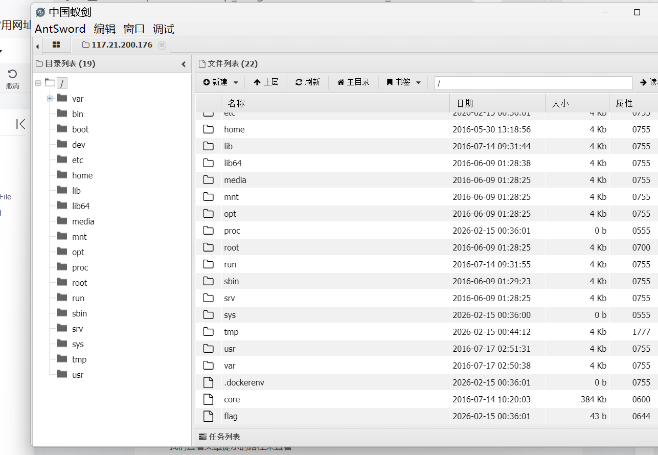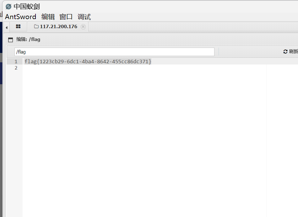 然后将得到的路径拼接在后面使用蚁剑来连接之后得到结果