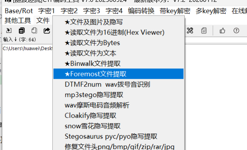 我们下载题目给的图片之后我们将题目给的图片的路径给到这个随波逐流的工具下面的文件模块