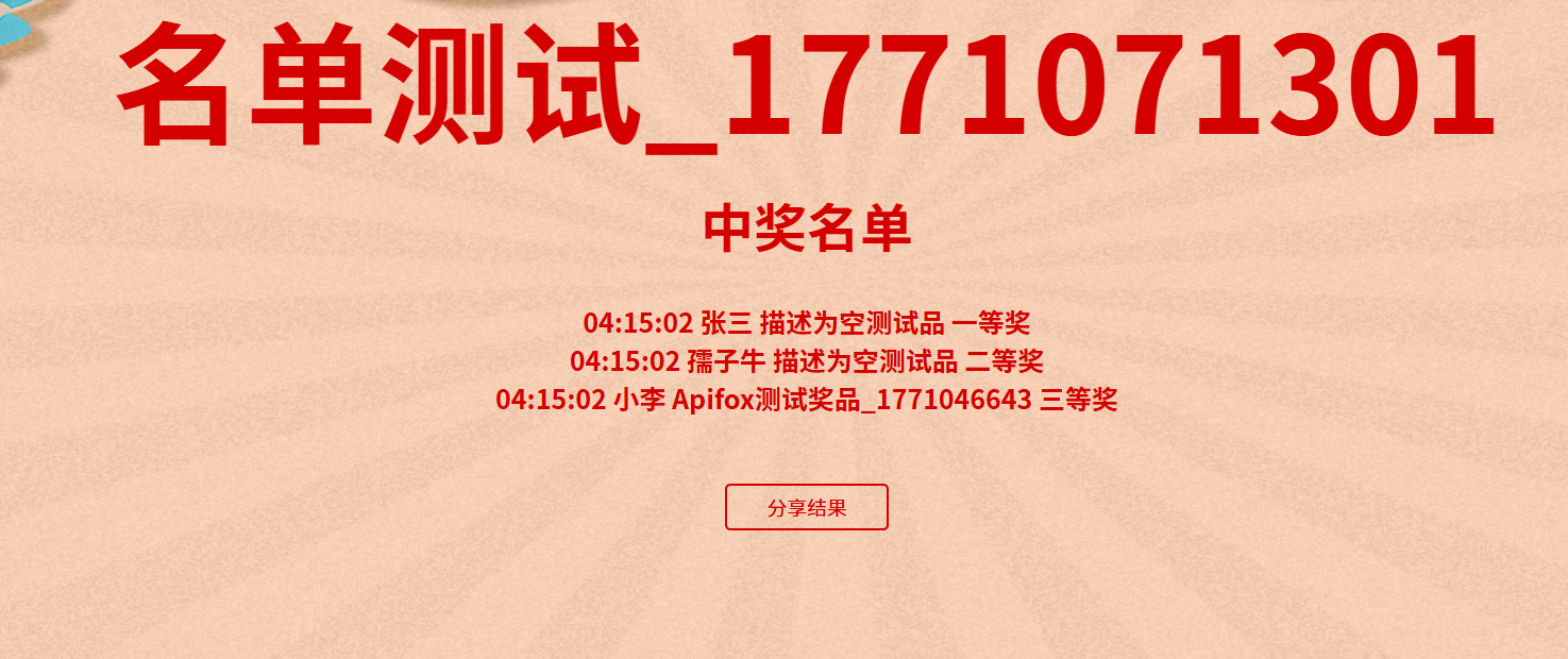 POST | JSON | activityId, prizeId, prizeTiers (奖项等级), winningTime, winnerList (中奖人名单) |