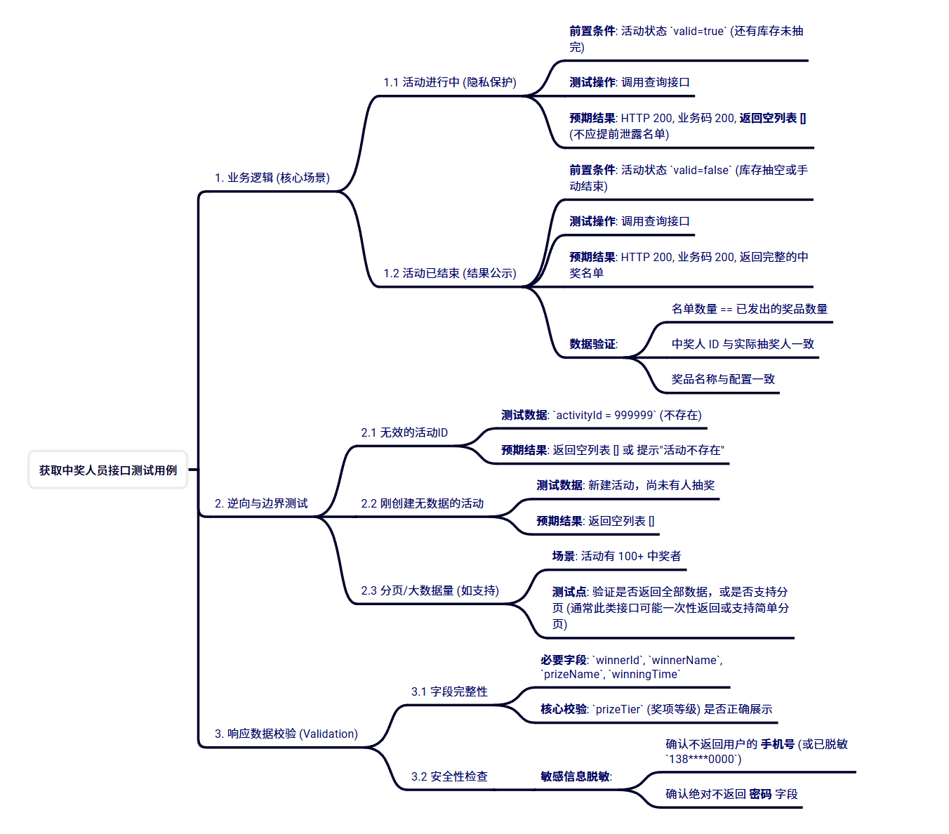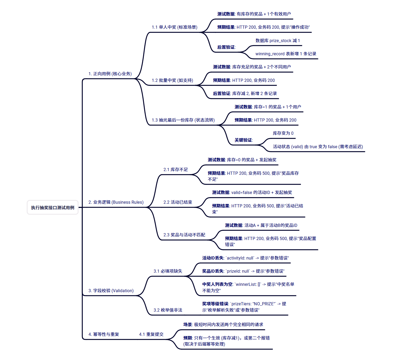 测试点:设计业务关联用例 。例如:先调用创建活动接口 -> 修改活动状态 -> 发起抽奖请求。验证每个环节的数据扭转是否符合预期。