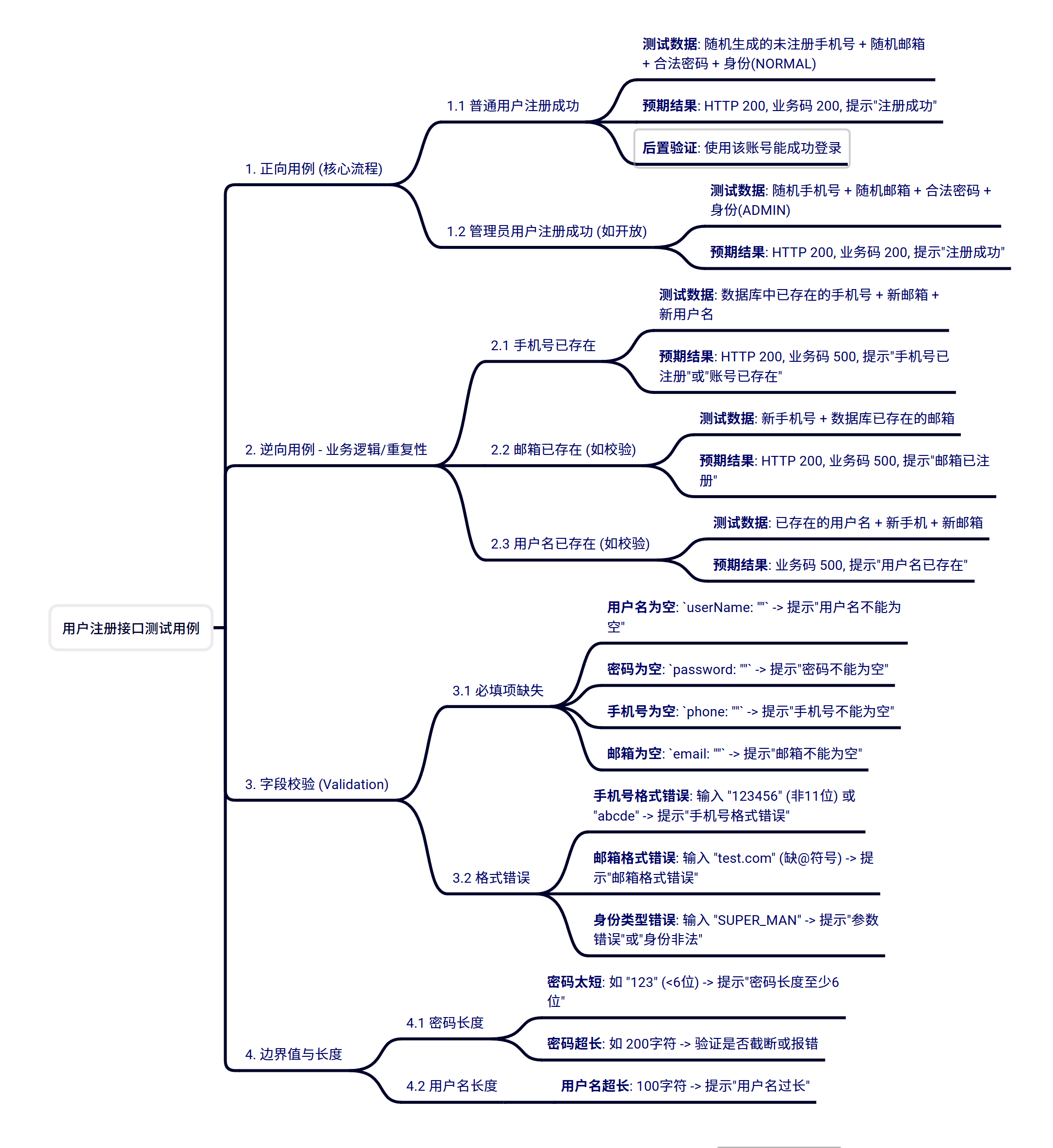 缺陷分析 (Bug 列表) :在编写自动化脚本时,你很可能会发现自己以前写的 Java 代码中的 Bug(例如某些接口未做非空校验抛出 NullPointerException)。把这些真实发现的问题记录下来,这是最有价值的部分 。