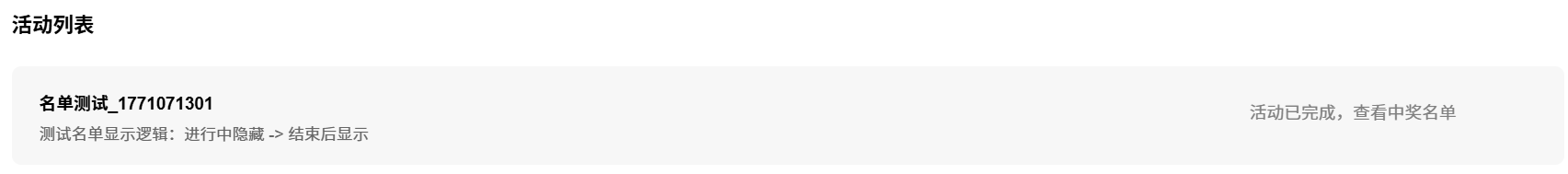 | Low | 状态延迟 抽奖结束后,活动状态变更存在 1-3 秒延迟,影响前端实时展示。 | 接受当前延迟,或前端增加轮询/倒计时机制。 |