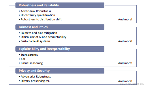 主要讨论如何确保深度学习模型的可信性,以及对抗学习中的一些方法与挑战。可信性在机器学习模型中是一个核心概念,它涉及如何确保模型在不同环境中依然表现稳定且符合预期。