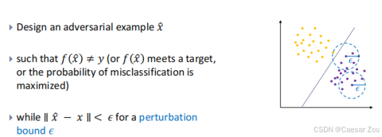 对抗性样本 是指通过向输入数据中添加人眼难以察觉的微小扰动,导致模型做出错误的预测。尽管这些扰动看起来像是随机噪声,但它们是有意设计的,目的是欺骗模型。