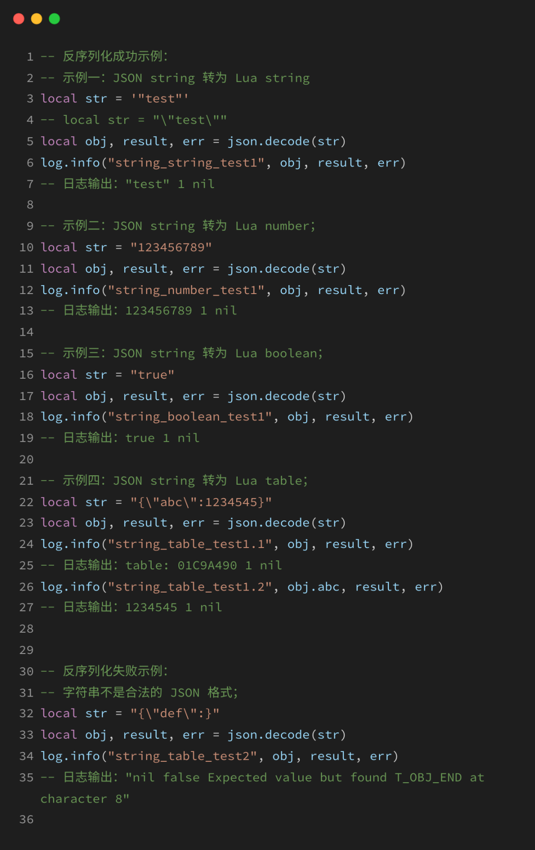 将JSON字符串转为Lua对象,涵盖以下核心要点: