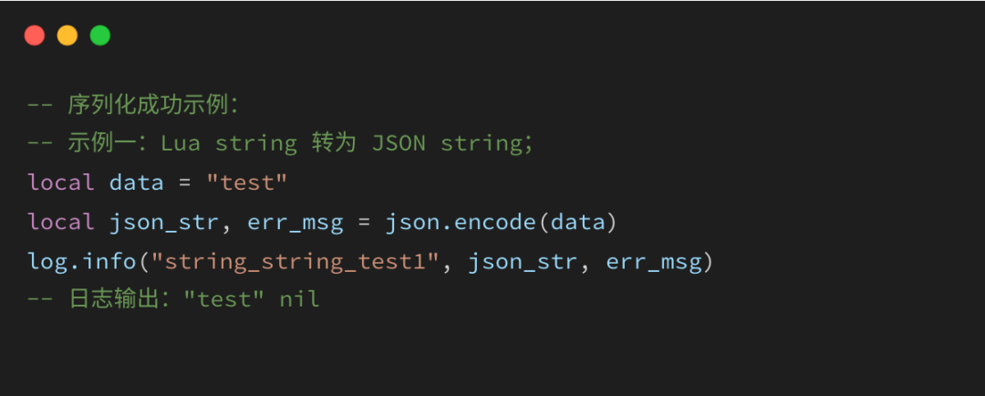 示例一:Lua string转为JSON string;