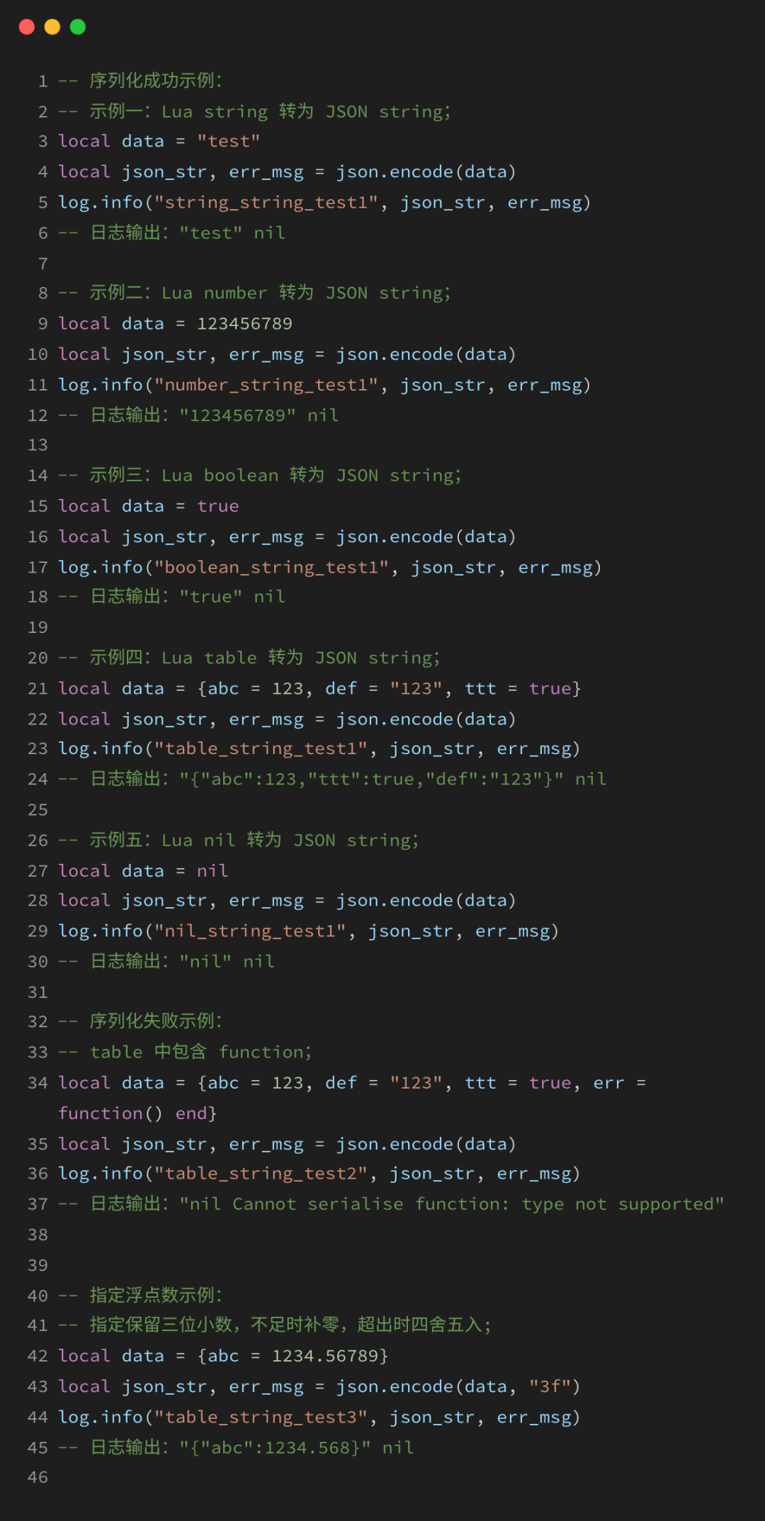 示例二:Lua number转为JSON string;