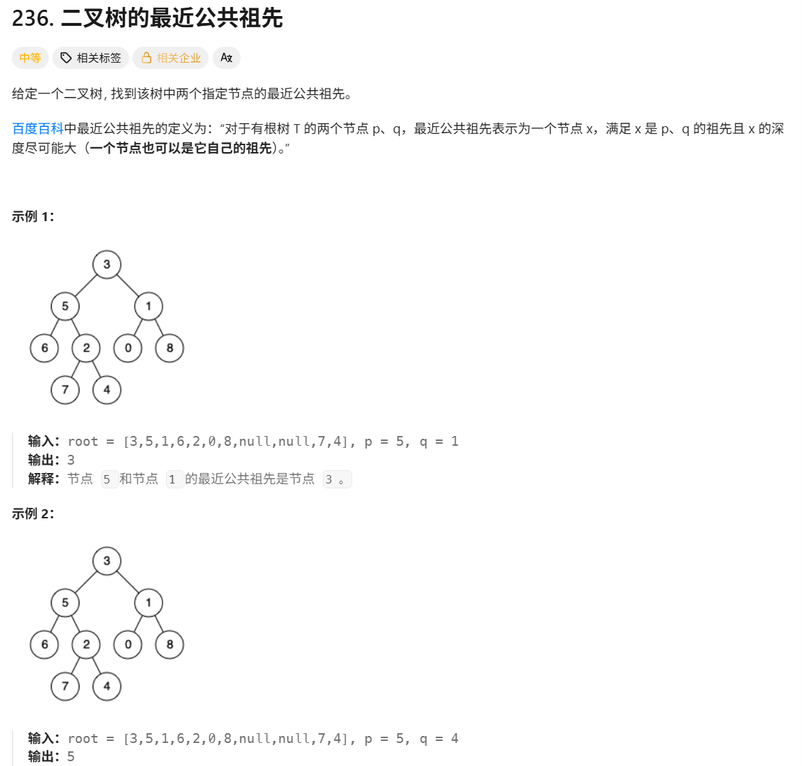 # 1. 终止条件:我没有子节点; or 我就是p、q