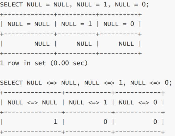 WHERE qq = NULL什么也查不到,因为NULL不等于任何值。而WHERE qq <=> NULL则可以,<=>将两个NULL视为相等。