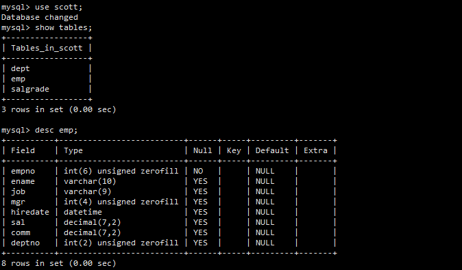 为了演示分组,使用一个经典的员工-部门数据库scott。