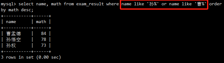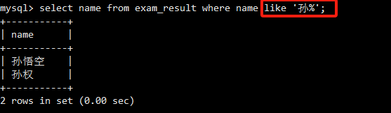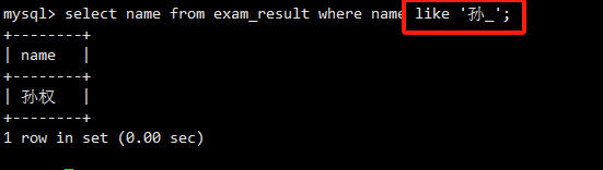 LIKE '孙_'只匹配姓孙且名字只有一个字的同学。