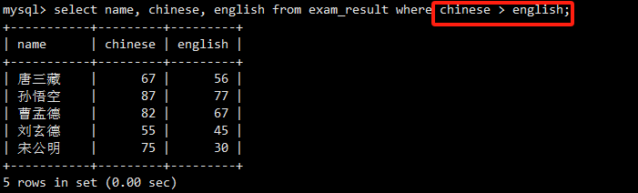 SELECT * FROM exam_result;返回了exam_result表中的所有行和所有列。在生产环境中,应避免使用SELECT *,因为它可能传输不必要的数据,增加网络负载,并且可能使查询无法有效利用覆盖索引。