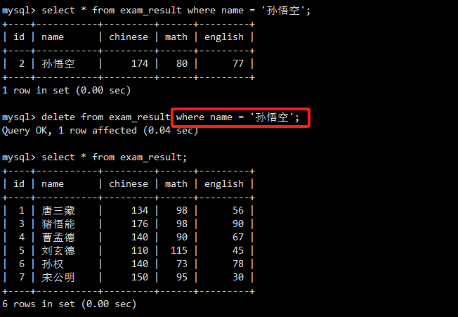 同样,WHERE子句至关重要,省略它会删除表中的所有数据。