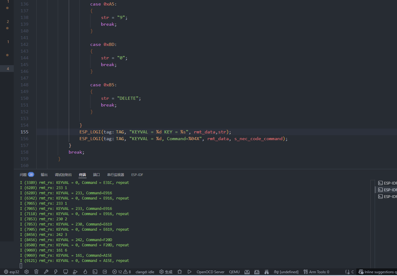 ESP32 使用ESP-IDF 驱动红外遥控器源码分享