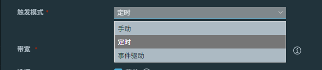 在触发模式中,有三个选项,分别是 手动、定时、事件驱动。