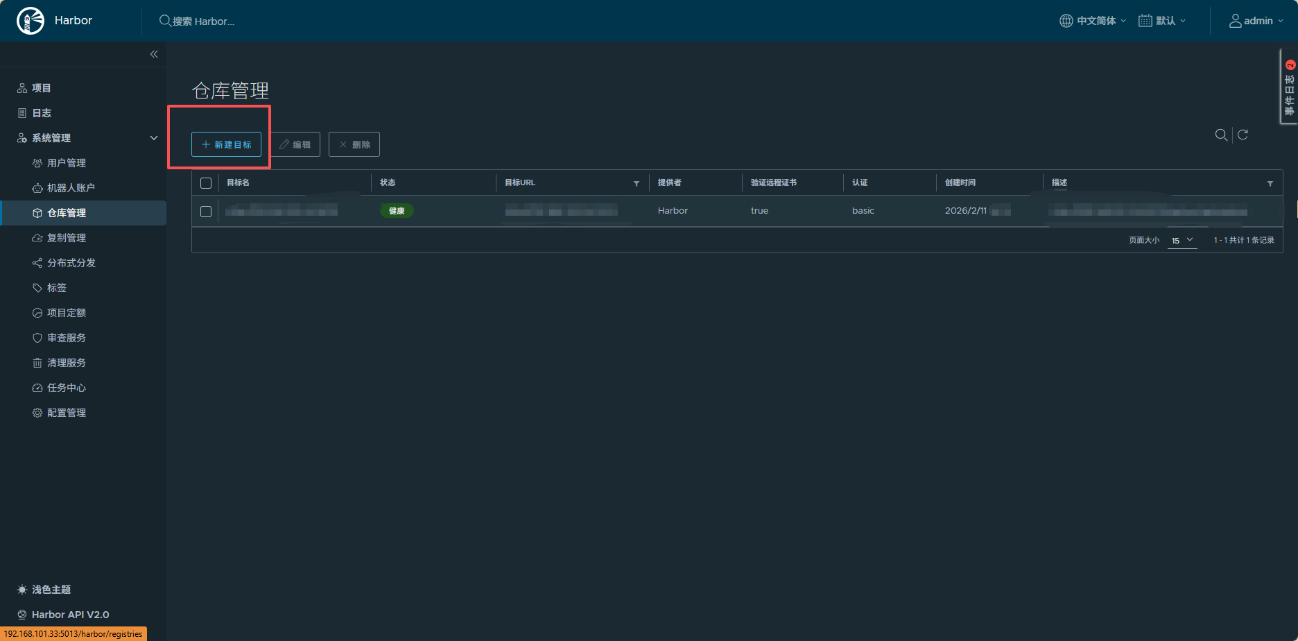 - 注意 :如果目标 Harbor 使用 HTTPS,需确保地址协议为