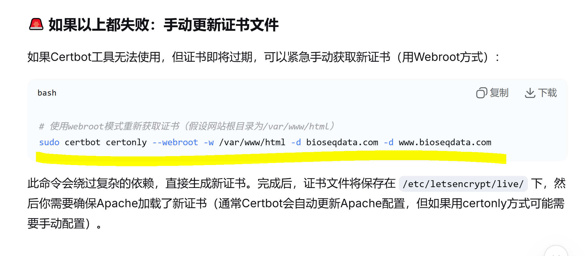 一、经确认是SSL证书过期了,但是安装以后出现问题:Unable to find a virtual host listening on port 80 which is currently needed for Certbot to prove t o the CA that you control your domain. Please add a virtual host for port 80.