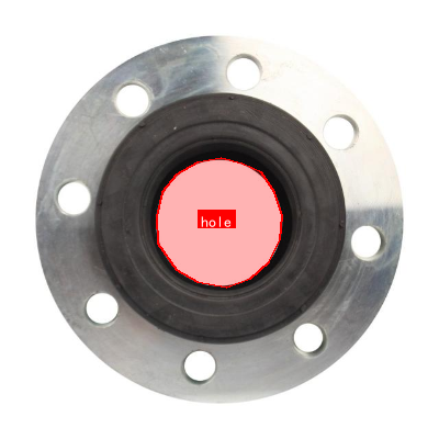 如图所示,法兰盘表面存在的孔洞缺陷被清晰标注。这种缺陷在实际生产中可能由材料老化、加工失误或使用过程中的损伤导致,严重影响密封性能和结构完整性。传统人工检测难以发现微小缺陷,而基于深度学习的智能检测系统可以实现对这类缺陷的精准识别和分类。