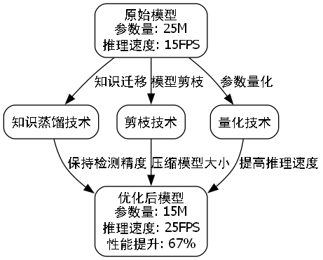 优化阶段主要针对模型的推理速度进行优化。🚀 在这一阶段,我们采用了知识蒸馏技术,将大模型的"知识"迁移到小模型中,在保持较高检测精度的同时,显著降低了模型复杂度。同时,我们引入了剪枝和量化技术,进一步压缩模型大小,提高推理速度。优化后的模型参数量从原始的25M减少到15M,推理速度从15FPS提升到25FPS,完全满足工业实时检测的要求。在实际工业部署中,我们发现这种优化策略可以在几乎不损失检测精度的前提下,将模型推理速度提升约67%,这对于资源受限的工业环境至关重要。🎯