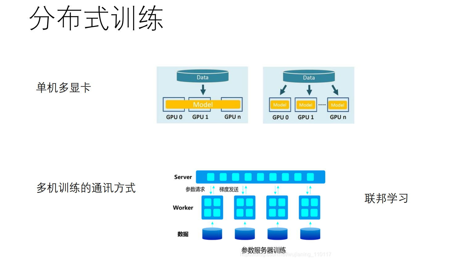 当模型参数量巨大(如大模型)或数据涉及隐私时,单机训练已无法满足需求。