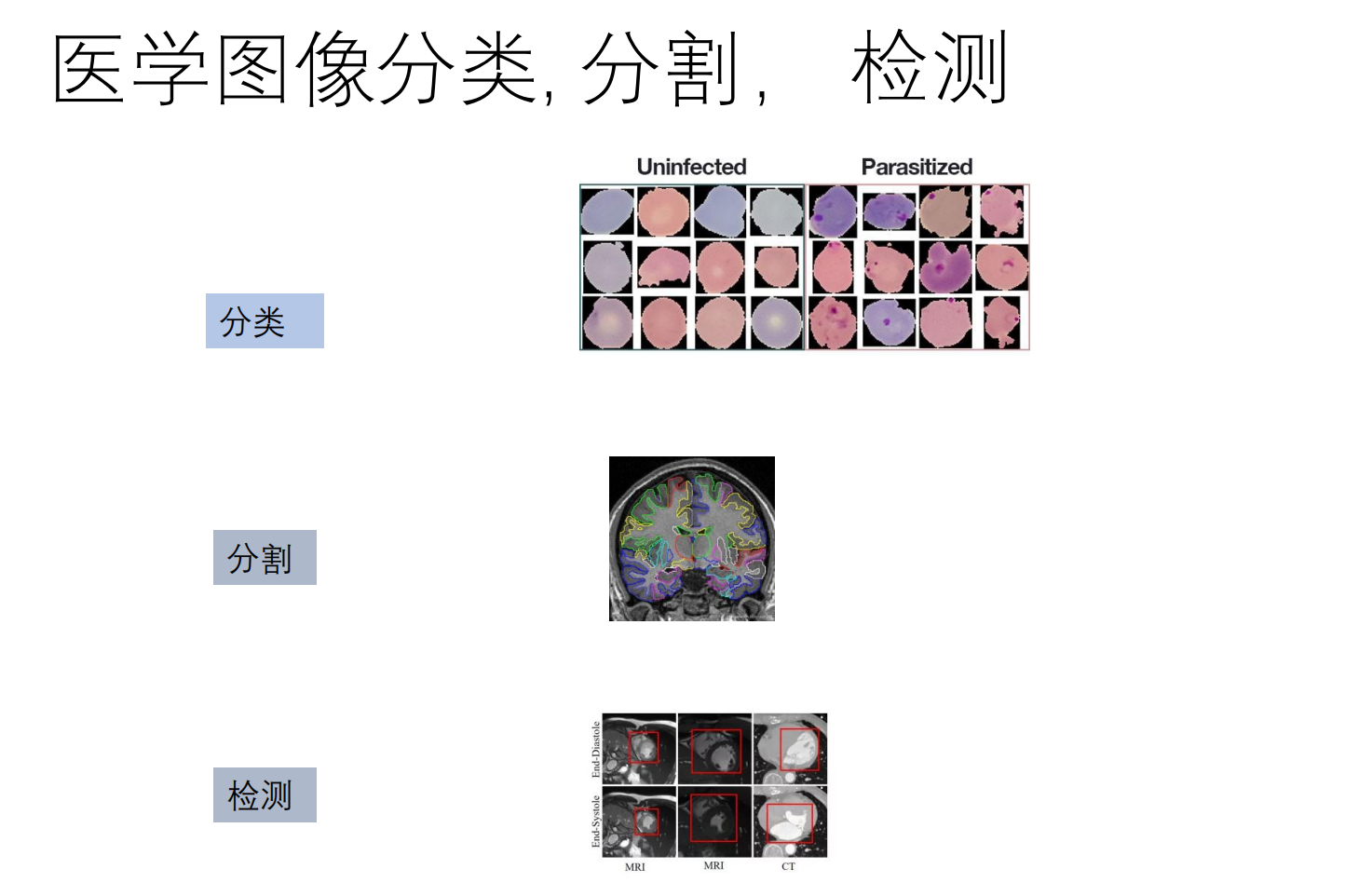 任务:病灶分类、器官分割、病灶检测。